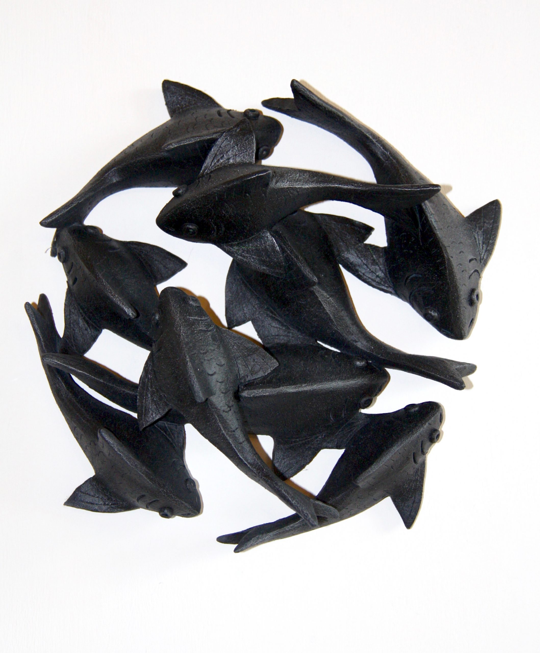 The artist grew up on the coast. His dynamic sculptures of shoals of fish reflect his fascination as a child with the exquisite forms, fluid patterns and flowing movement of fish in the tidal creeks on the south coast of England.